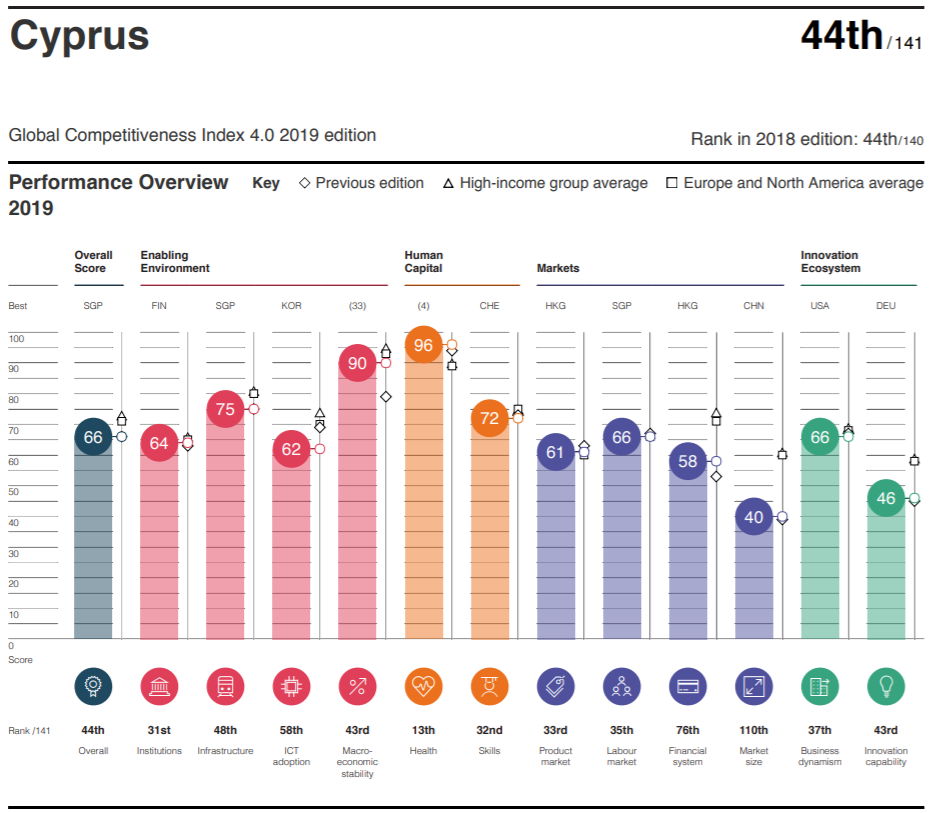 Cyprus has ranked 44th out of 141 economies, whilst Israel ranked 20th.